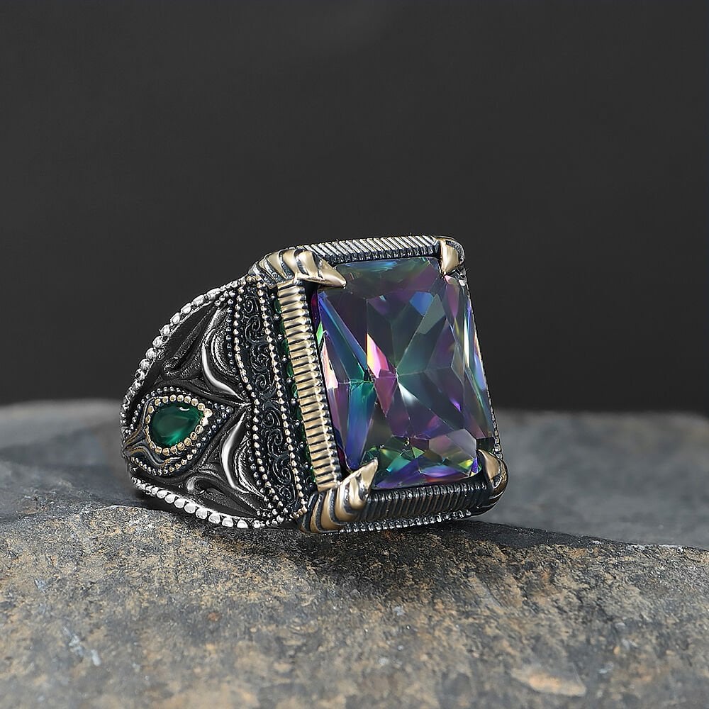 Kare Kesim Mistik Topaz Taşlı 925 Ayar Gümüş Yüzük