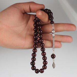 Gümüş Püsküllü Ateş Kehribar Tesbih