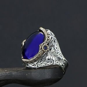 Parlament Mavisi Zirkon Taşlı 925 Ayar Erkek Gümüş Yüzük