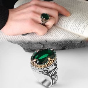 Yeşil Zirkon Taşlı 925 Ayar Erkek Gümüş Yüzük